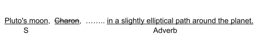 Pluto’s moon, Charon, _____ in a slightly elliptical path around the planet.